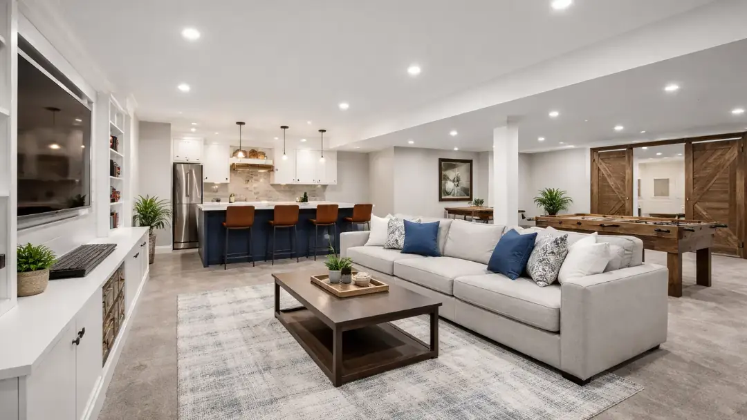 From moisture protection systems to modern lighting and flooring, our team builds customized basement spaces such as home gyms, entertainment rooms, and comfortable family areas.